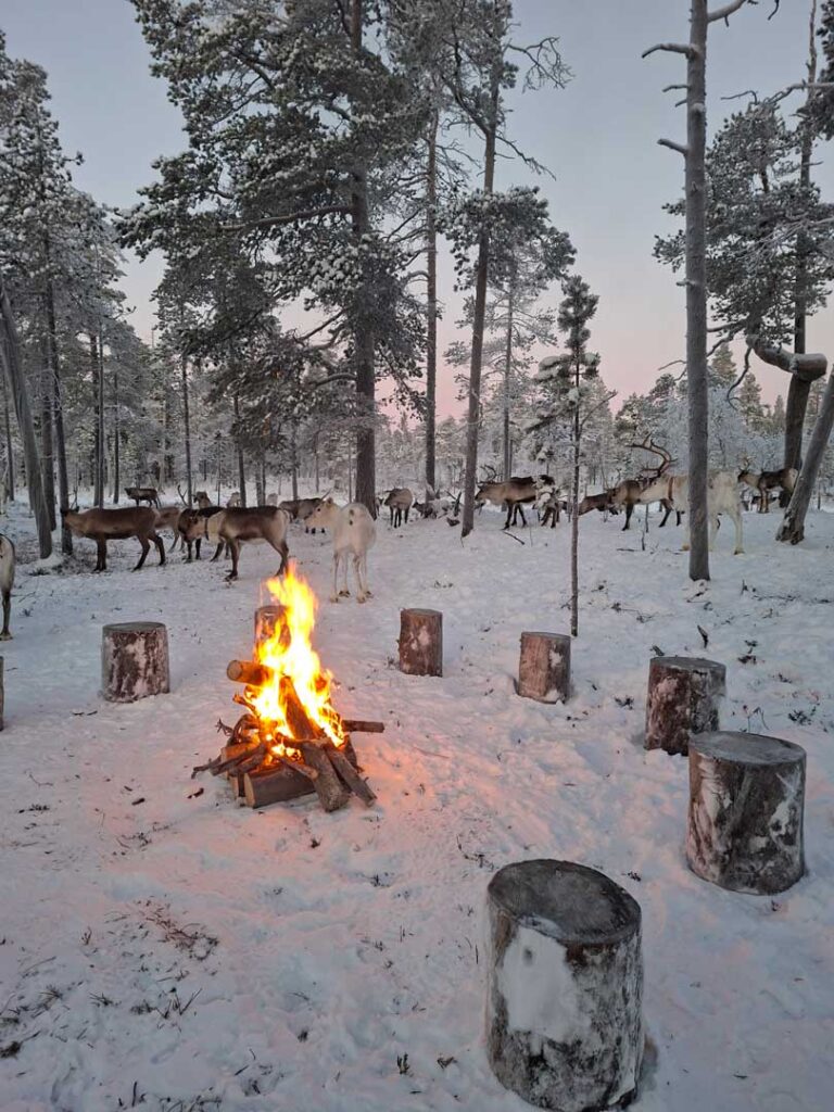 We will take a short walk to the reindeer enclosure to feed the reindeer — a wonderful opportunity